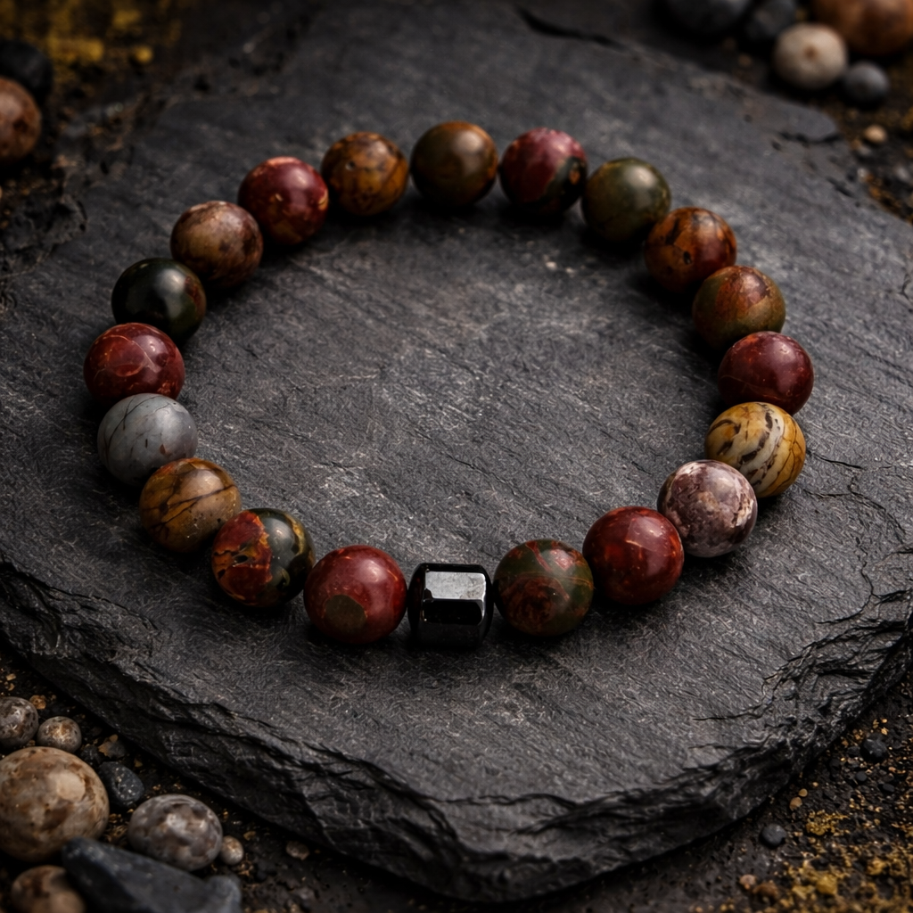 Bold hematite-infused designs created to support focus, confidence, and inner strength.